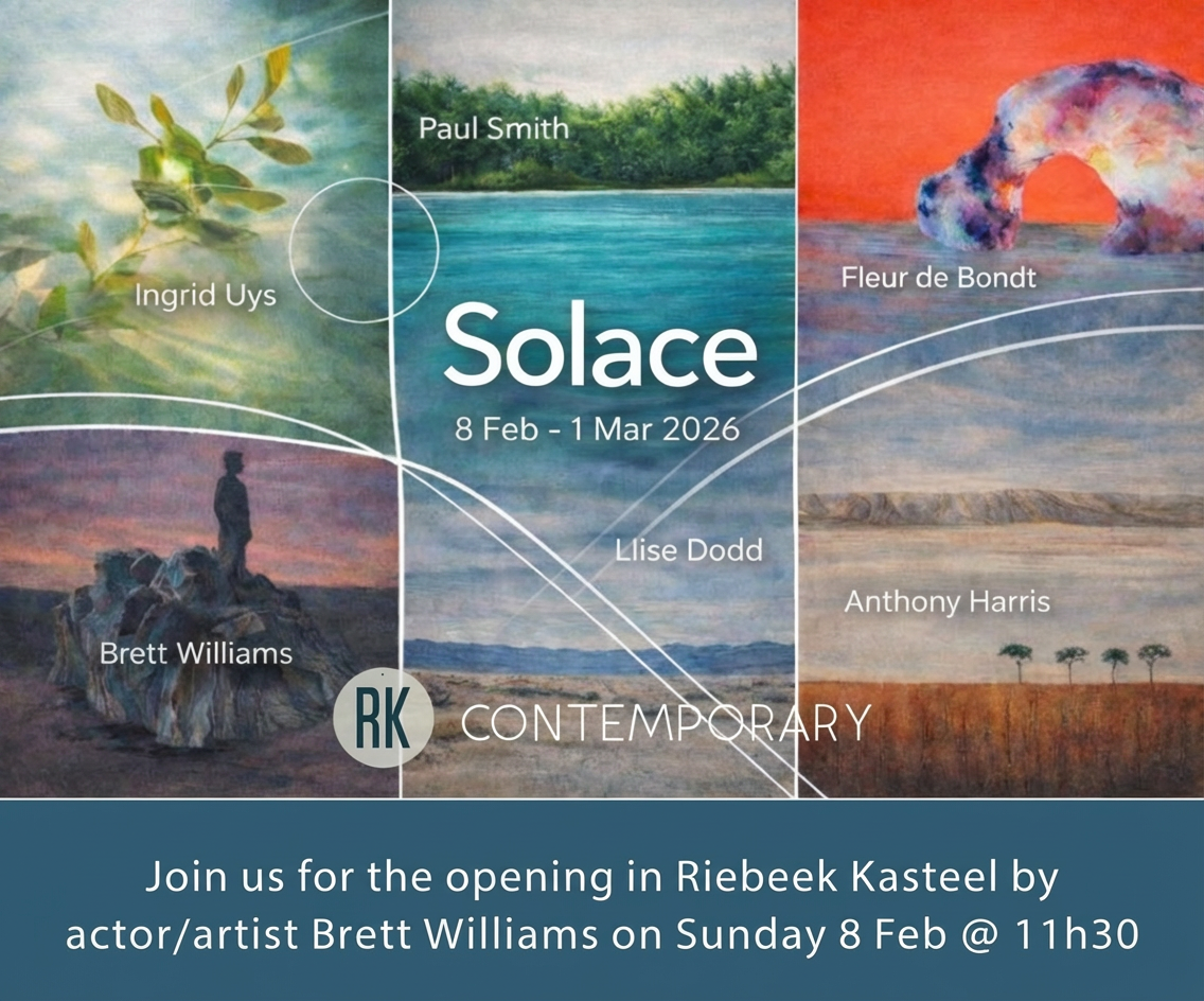 ‘Solace’ takes place in the height of Riebeek Kasteel’s summer, exploring how heat-both physical and psychological- can dominate our lives. Amid this intensity, the exhibition seeks relief through gestures of cooling, shadowed corners, quiet interiors, and pauses that offer escape from the blaze outside - framing the gallery as a sanctuary from the sun’s unrelenting heat. RK Contemporary presents Solace, opening Sunday 8 Feb, exhibition runs until1 March